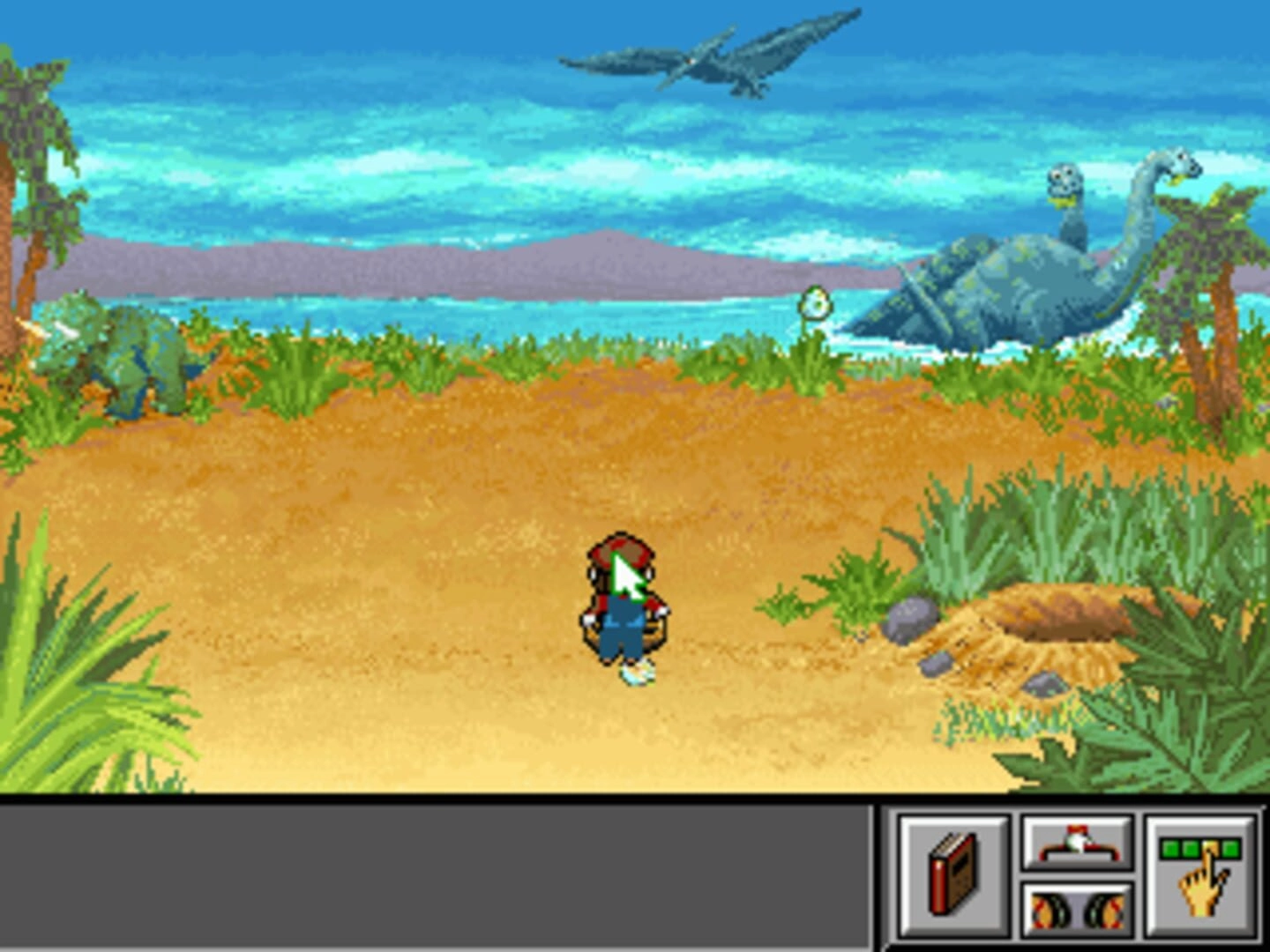 The objective of "Mario's Time Machine" is to ensure that historical artifacts are returned to their proper time periods. How do you go about doing that, you ask? Well, Mario has a nifty central hub that allows him to travel through time. As he enters each time period, he must explore and interact with the locals to gather information about the artifact, the era it belongs to, and the influential person associated with it.