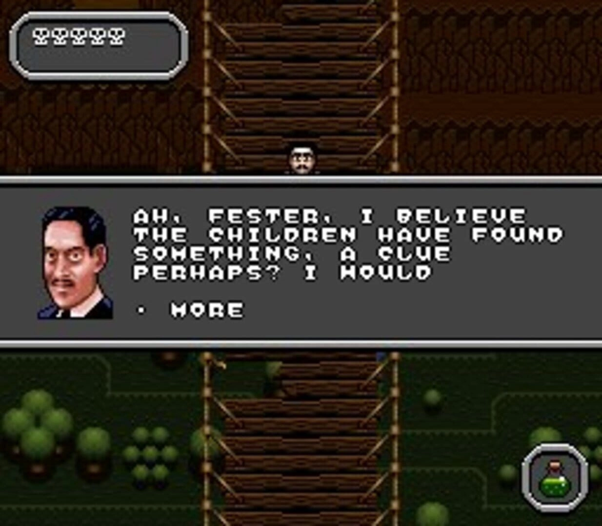 Fester is not alone in this perilous mission, as he bumps into his quirky relatives along the way. Gomez, Morticia, Lurch, and other members of the Addams Family offer invaluable advice and provide him with special items. These items prove to be Fester's lifeline in battling the terrors that await him. He receives a box of seeds, which can sprout into enemy-attacking mini bushes to clear his path. And let's not forget the black beetle cookies that deliver a dose of ill-health to Fester - an ironic twist, indeed!