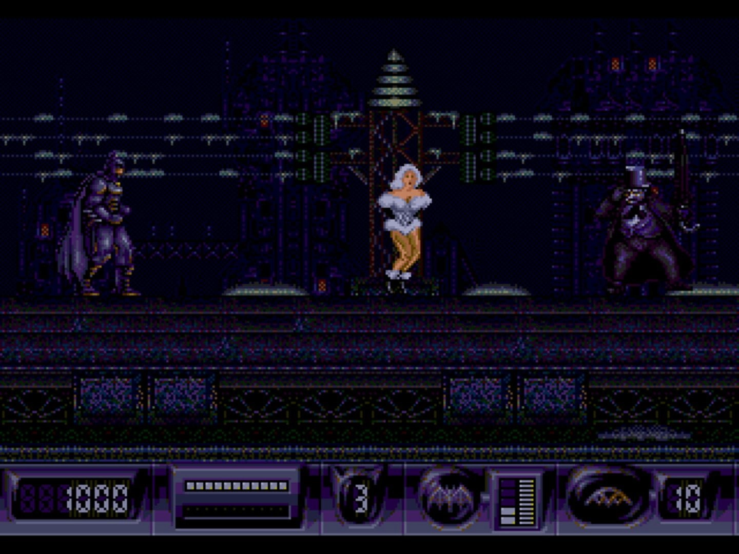 Not only does Batman Returns excel in gameplay, but it also nails the presentation. The graphics of the game are top-notch, with detailed character sprites and vivid backgrounds. The game truly captures the dark and gritty atmosphere of Gotham City, while still maintaining a sense of humor. The sound design is equally impressive, with a memorable soundtrack that sets the mood for each level.