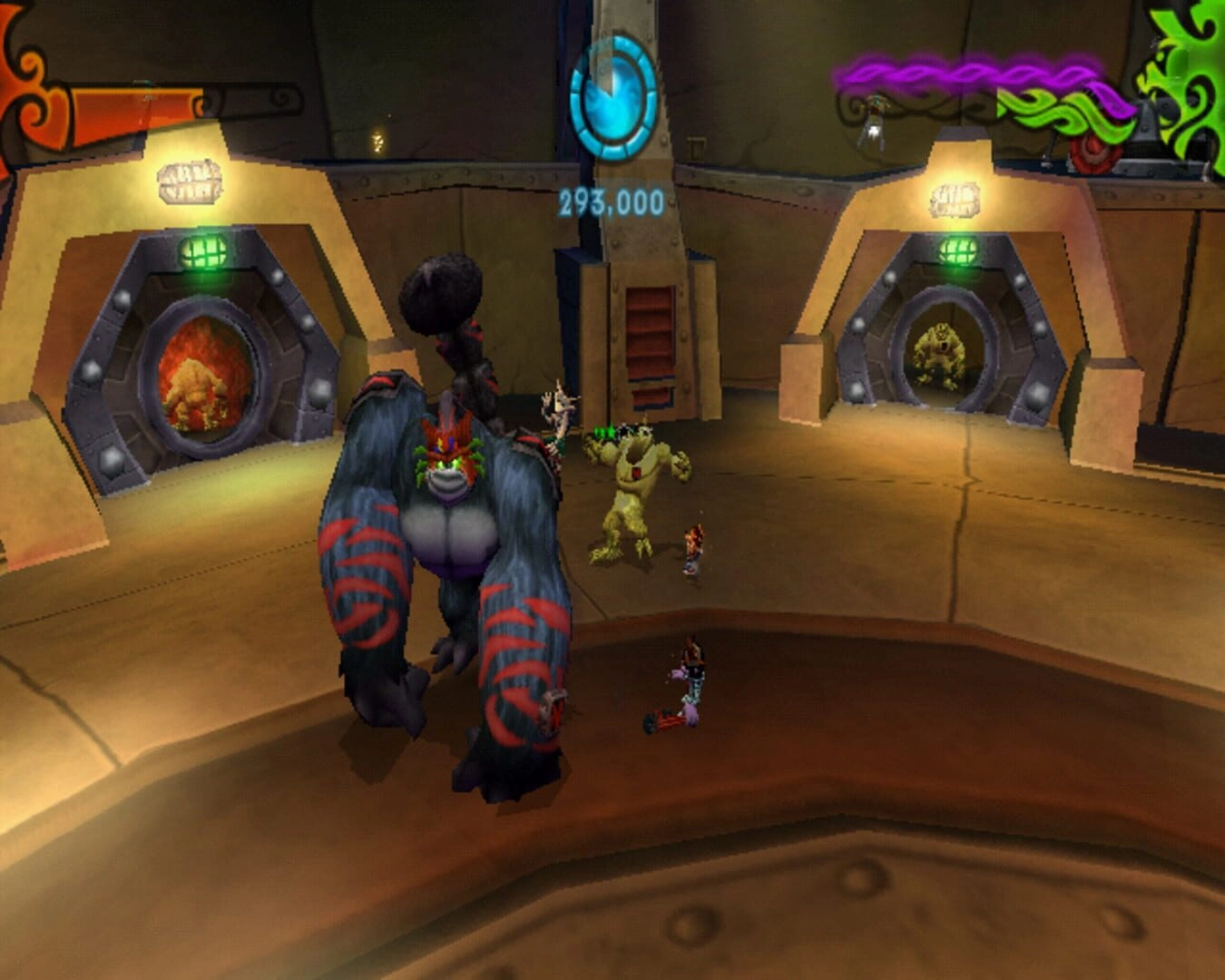 The levels in "Crash of the Titans" are a visual treat. From lush jungles to futuristic cities, each environment is bursting with color and life. And let's not forget the memorable characters you'll encounter along the way. Whether it's Crash's quirky allies or the bizarre enemies he faces, there's never a dull moment in this game.