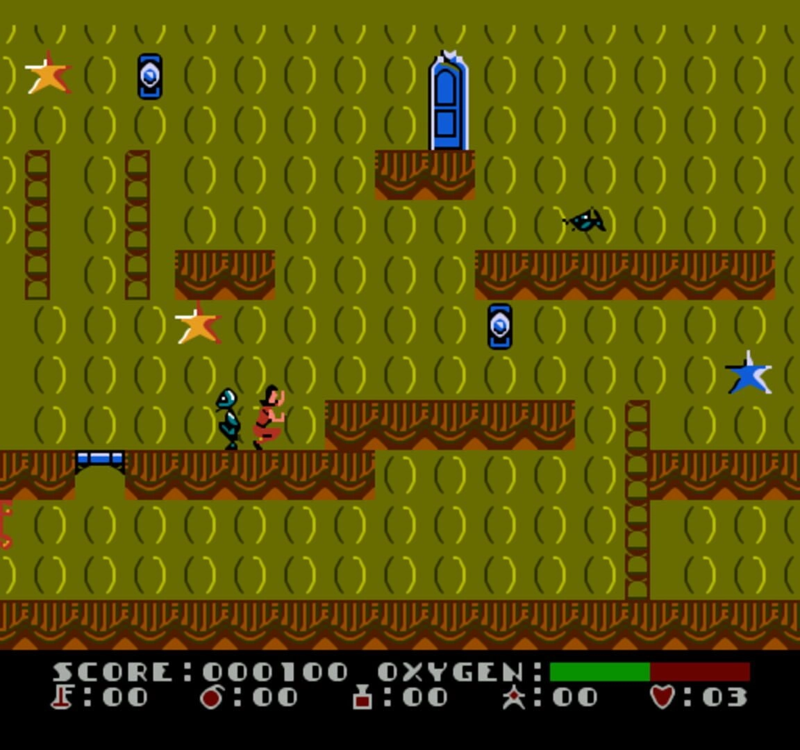 The gameplay in Dash Galaxy in the Alien Asylum combines elements of platforming, puzzle-solving, and strategic thinking. Each floor presents a set of rooms that Dash must conquer to progress further. To unlock doors and access higher floors, Dash needs to collect keys scattered throughout the rooms. However, it's not as simple as it seems. Dash's only weapons are a limited supply of bombs and remote detonators, making timing crucial to succeed in the game.