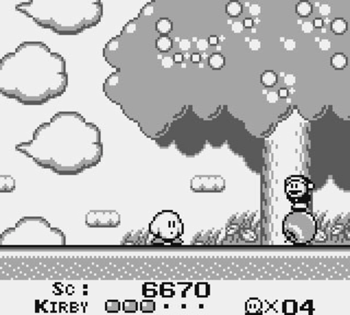Each level in Kirby's Dream Land is played on a two-dimensional plane, allowing our pink hero to venture left, right, up, and down in his pursuit of justice. Kirby has a repertoire of moves at his disposal, including walking, jumping, and flying. But what sets Kirby apart from other platforming heroes is his unique ability to inhale objects and enemies.