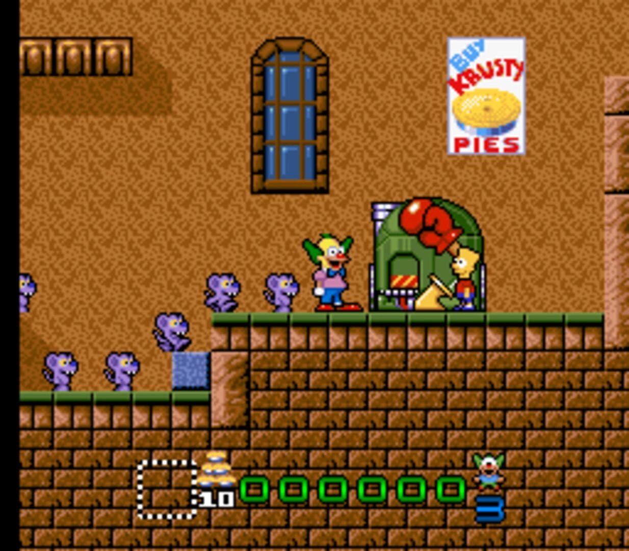 All in all, Krusty's Fun House offers a fun and challenging gaming experience for NES enthusiasts. With its clever puzzle design, vibrant visuals, and memorable soundtrack, it remains a beloved title among fans of the iconic TV show. So, join Krusty in his quest to clean up his Fun House and put those pesky rats back where they belong!