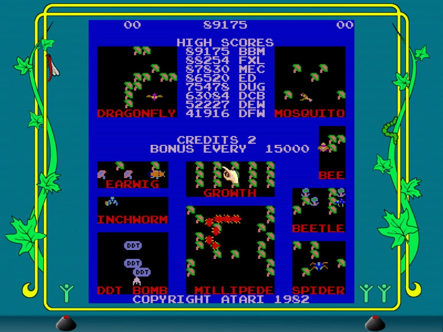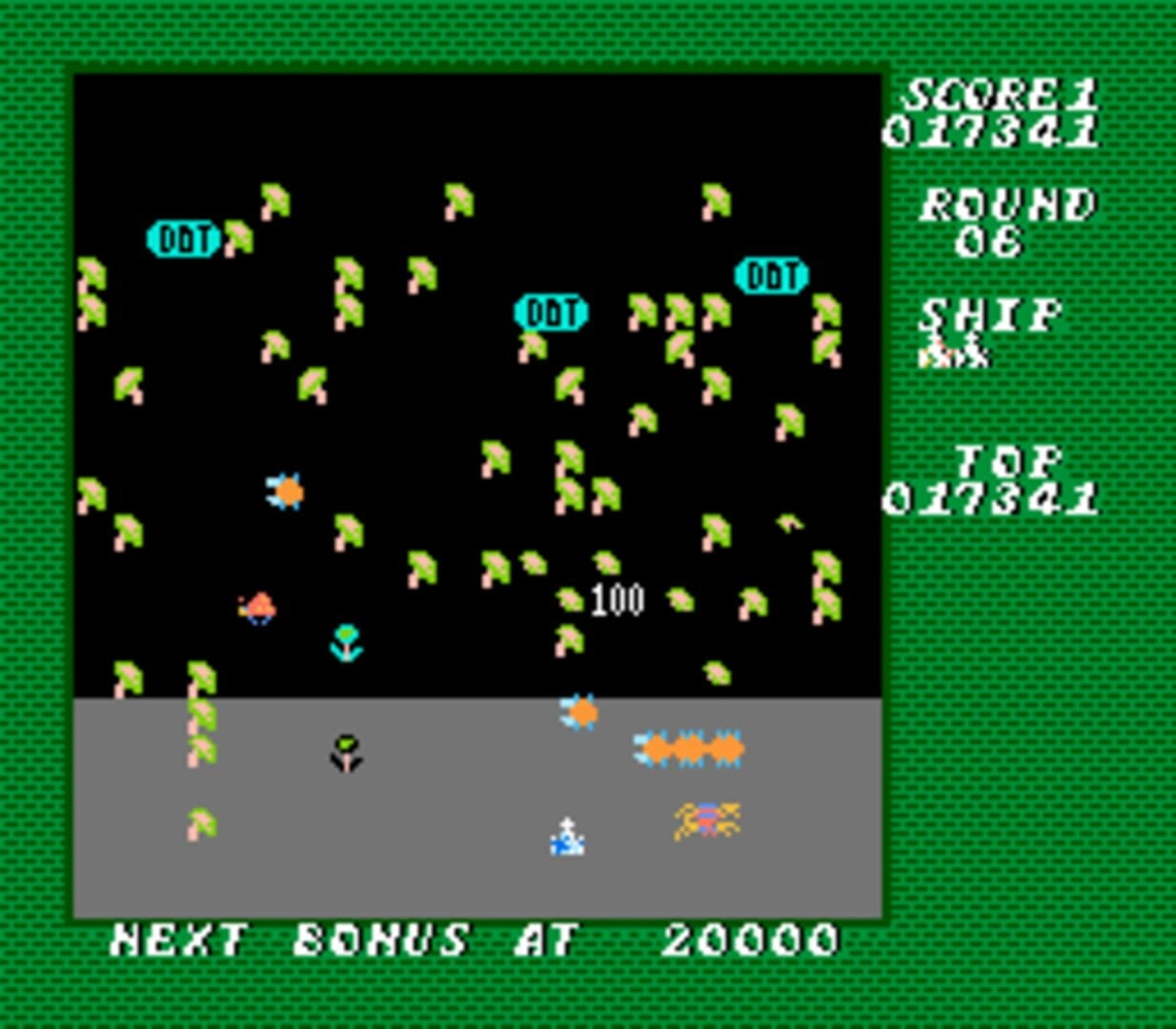 Like most arcade games of its time, Millipede only has a limited number of lives, and the game ends when the player loses their last life. At the end of the game, players are given a score based on their performance, providing a sense of accomplishment and motivation to replay and improve their score.