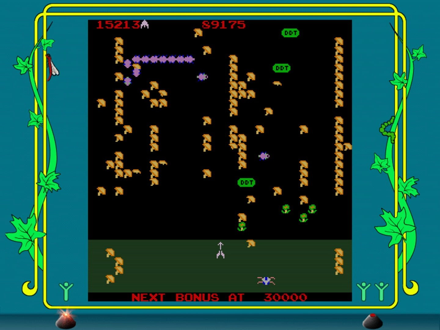 In addition to the millipede and other enemies, players can also encounter power-ups during gameplay. One notable power-up is the DDT bomb, which, when shot, clears the entire screen of enemies and obstacles. This power-up can be a game-changer, providing players with a momentary advantage to progress further in the game.