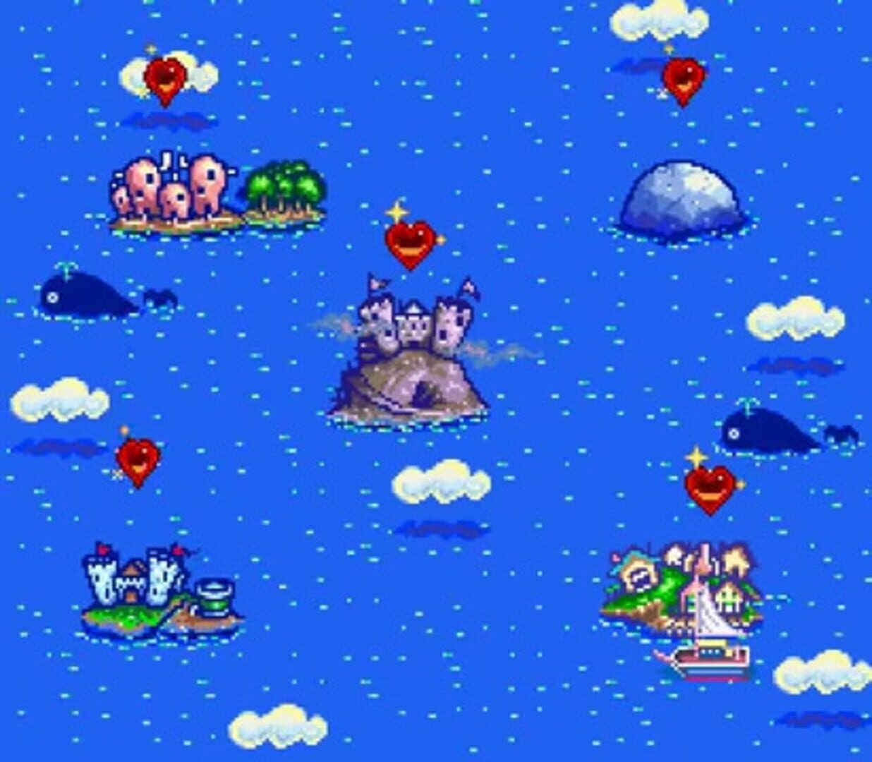 At the start of each stage, the player is shown which character needs to be saved. The character's heart rises into the sky, breaking into multiple pieces, which then scatter onto random spaces on the map. These scattered hearts appear as enclosed spaces on the map. To progress, players must navigate the map and collect all the scattered hearts.