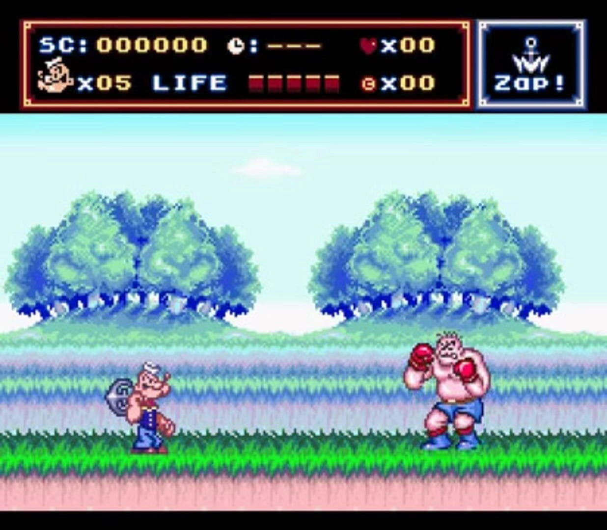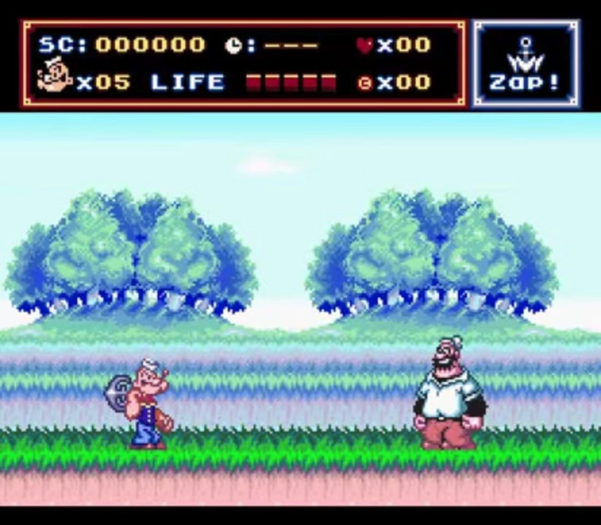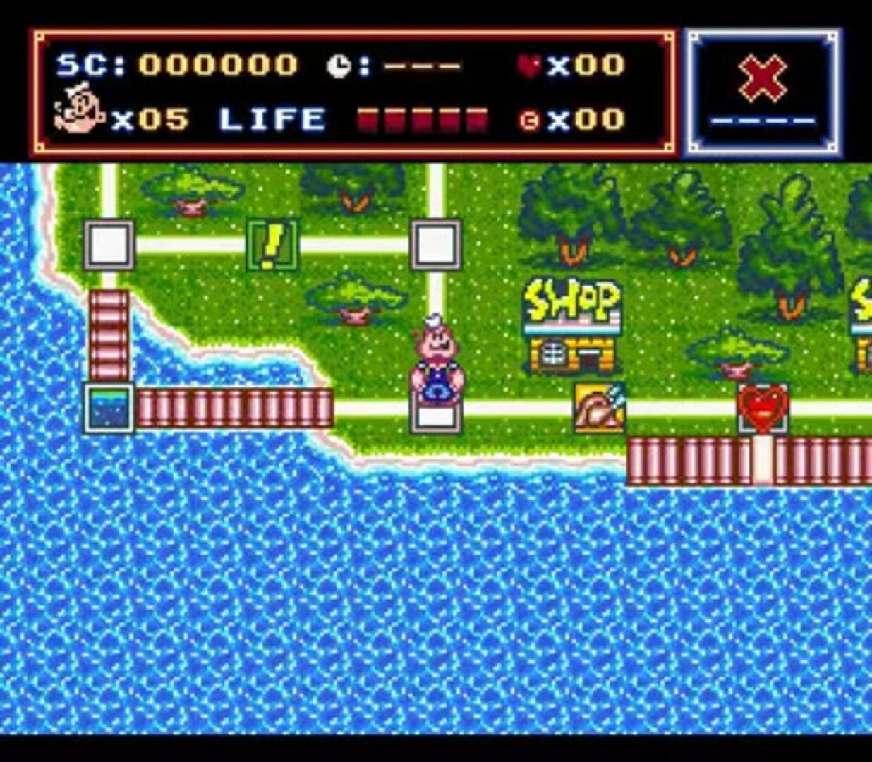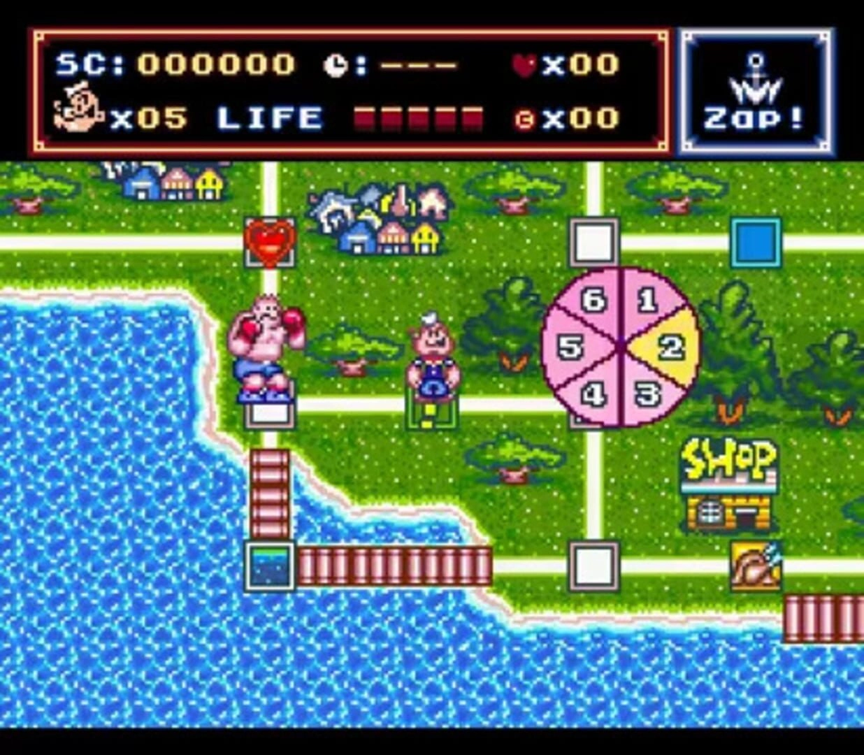 Popeye: Ijiwaru Majo Seahag no Maki is an interesting and unique NES game that combines elements of a board game and a side-scrolling action game. The main objective of the game is to recover all the hearts scattered around the game board and defeat the villains presented by Popeye's adversaries, ultimately leading to a final battle with the seahag.