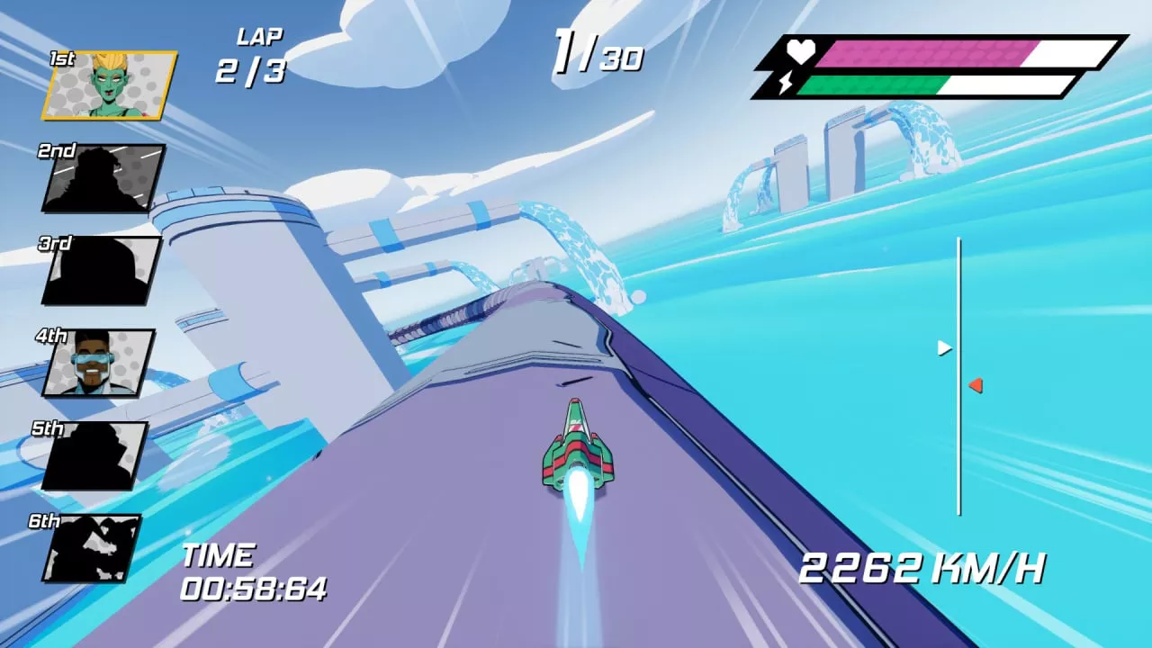 The visual and thematic influences for Aero GPX extend beyond the F-Zero series. Elements of Wave Race 64 are apparent in the game’s "uplifting, arcade-like summer vibe," which adds an inviting and enjoyable atmosphere to the game. Additionally, Kirby Air Ride's influence is seen in Aero GPX’s approachability and easy-to-learn mechanics, making it accessible to both newcomers and seasoned gamers.
