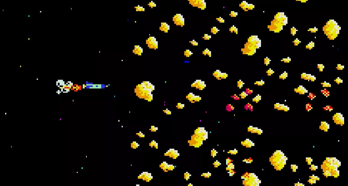 In terms of gameplay mechanics, 'Moon Shuttle' allows players to control the rocket's vertical movement and speed. The primary objective is to navigate from left to right across the screen, which is fraught with obstacles like asteroid fields. Players must use their skills to manoeuvre through or destroy these obstacles while also tackling enemies that appear throughout the levels. The simplicity of the controls—moving up, down, and adjusting speed—belie the challenge of mastering the game, making it appealing to both newcomers and seasoned gamers looking for a nostalgic challenge.