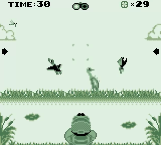 The constraints of the Game Boy have led to innovative control solutions in Duck Hunt GB. Replacing the light gun, historically essential to the Duck Hunt experience, players now use the Game Boy's directional pad (d-pad) to aim. The screen is divided into a grid, providing a clear and accessible aiming method that's well adapted to the handheld's limitations. Shooting is executed with the B button and reloading is allocated to the A button, streamlining the gameplay loop and maintaining the game's original sense of immediacy.