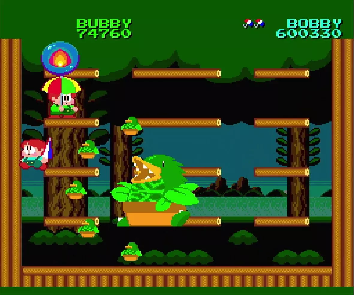 The game is renowned for its captivating plot, where players follow the adventures of two brothers, Bubby and Bobby. In a significant departure from their previous adventures, rather than capturing enemies in bubbles, the brothers wield magical parasols. These colorful parasols aren’t just for show; they equip players with the ability to attack enemies, block incoming threats, and unleash a cascade of high-scoring stars. Each level challenges the player to creatively use the parasol to navigate through myriad obstacles and enemies to rescue their neighboring planets from an evil menace.