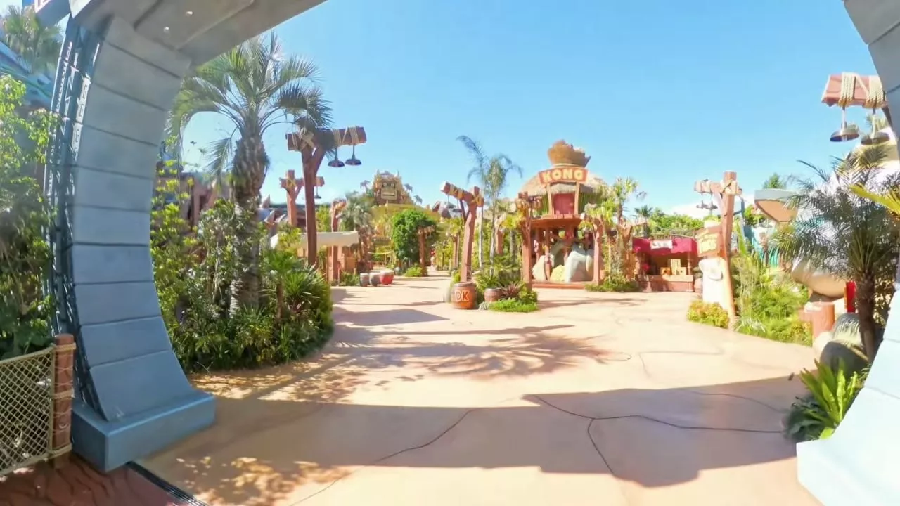 The journey to Donkey Kong Country starts intriguingly, requiring visitors to navigate through a rock-and-brick-lined tunnel accessible via the 1Up store within Super Nintendo World. Emerging from this pathway, visitors will step into a meticulously crafted environment, echoing the vibrant aesthetics familiar to fans of the Donkey Kong series. Towering palm trees, a replica of Donkey Kong’s iconic treehouse, and the majestic Golden Temple, are just a few of the sights that await.