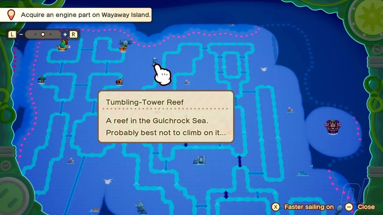 Once the pipe at Mynor Islet is activated, Wayaway Island's location becomes permanently marked on your map, positioned at the far east of the Gulchrock Sea. This revelation simplifies future access to the island, allowing you to revisit it whenever necessary throughout your adventure.