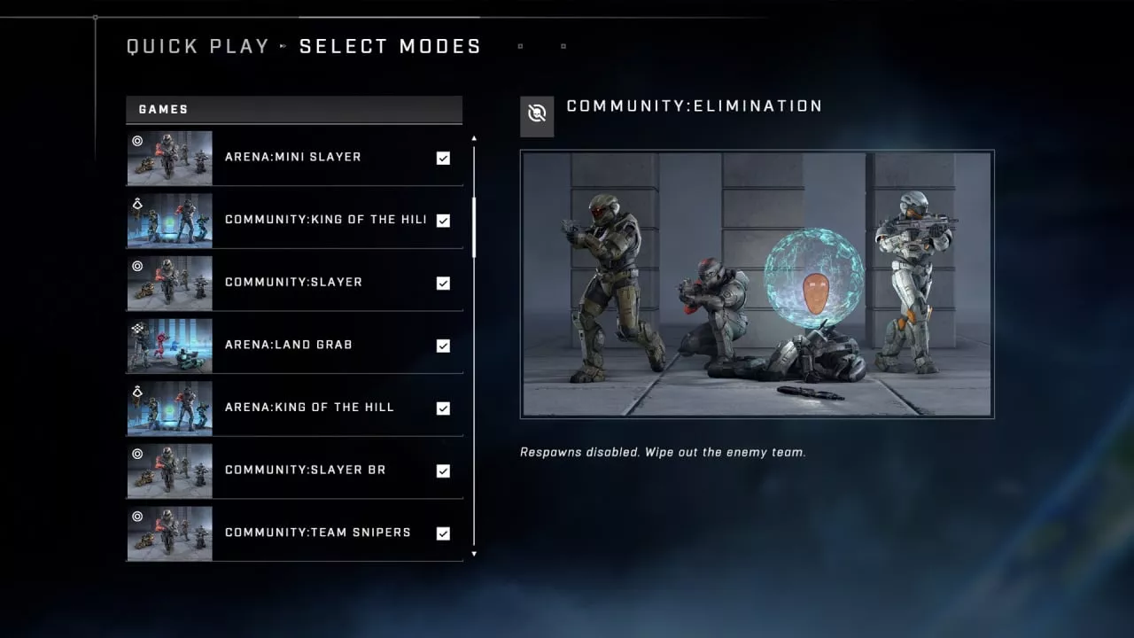 Using the Match Composer is straightforward. Upon navigating to the Multiplayer screen, players find the usual list of playlists. By selecting one, they are then able to customize which game modes they wish to participate in, based on offerings within that playlist. For instance, if the playlist is Free For All, it may contain up to ten different game modes. Initially, all these modes are selected, but players have the option to deselect any mode they prefer not to engage in. While this feature might increase matchmaking queue times due to the specificity of the games being filtered, a notification will alert players about potential delays.