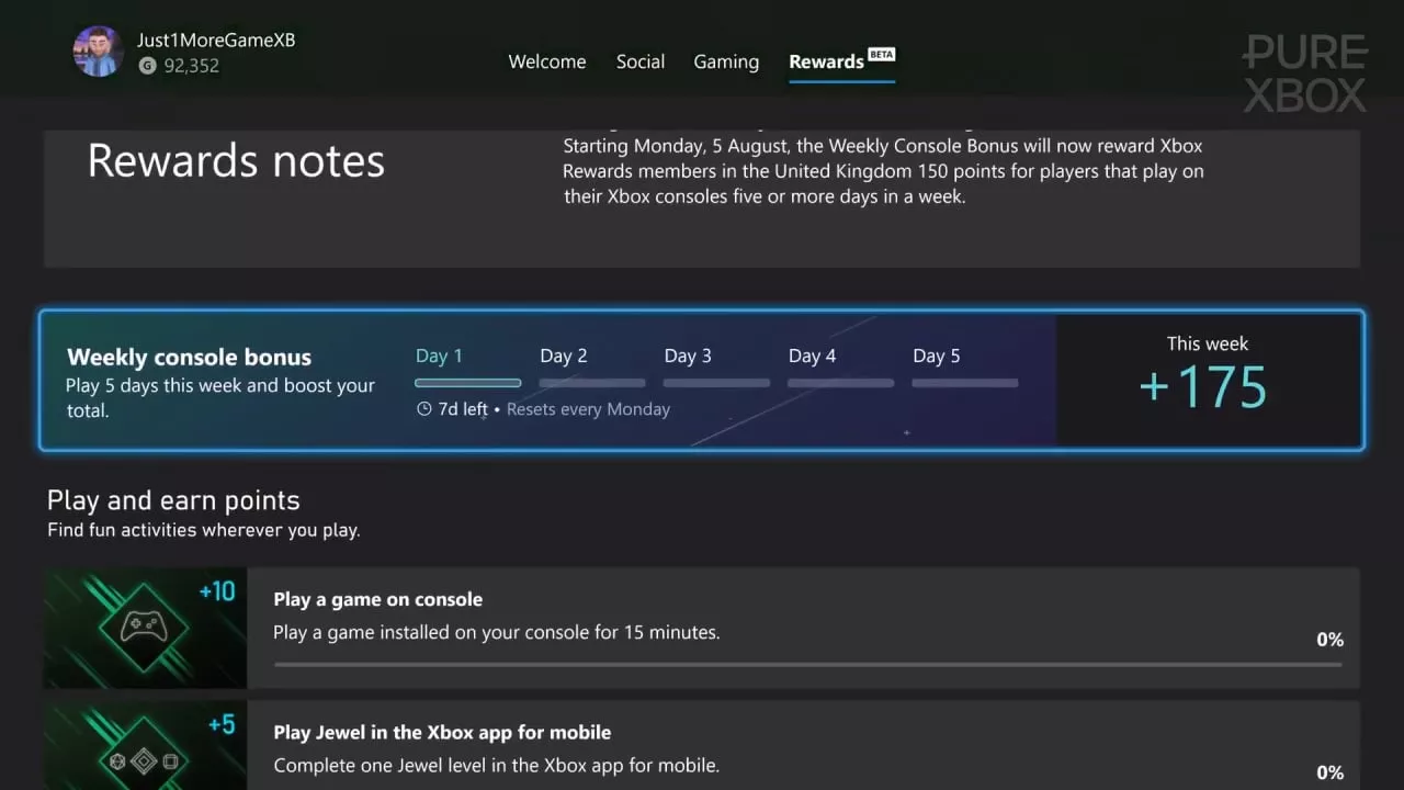 One of the notable features of the Microsoft Rewards system was the "Weekly Console Bonus" which rewarded users for regular gaming. Participants were able to earn hundreds of points weekly by engaging with their console over five or more days within the same week. Previously, this reward stood at 250 points a week, with an additional 25 points available for Xbox Game Pass Ultimate members. However, starting August 5, this reward has seen a significant reduction, now offering only 150 points for the same amount of gaming activity.