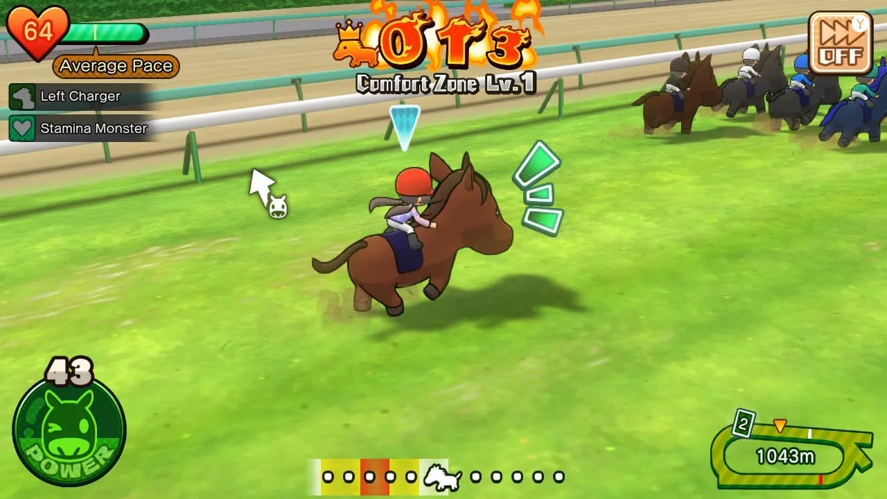 The transition to the Switch brought some changes, specifically in the game's controls, adapting from the two screens of the 3DS to the singular view of the Switch. Optimized for the Switch's touch screen in handheld mode, the game also introduces a more traditional control scheme using Joy-Con or the Pro Controller for docked play. While the touch controls remain the preferred method for many due to their quick input, the physical controls hold up satisfactorily despite losing some fluidity when transitioning from rapid card selection to horse racing actions.