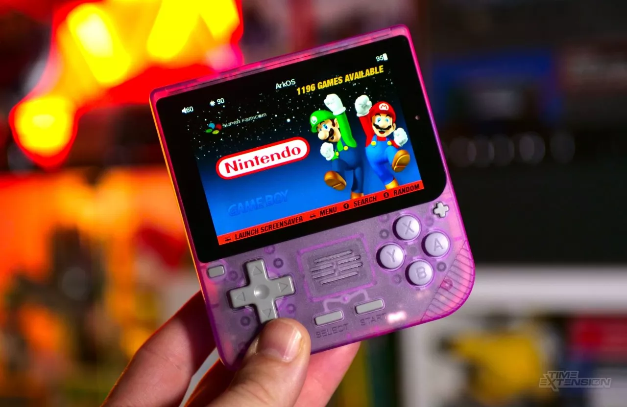 The PowKiddy V10, priced at just $45, might raise questions about its performance and build quality. However, it delivers significantly well given its low price point. The device sports a unique look that deviates from the typical design inspired by classic handhelds like the Game Boy. It features a more boxy shape and is fitted with a widescreen display which, while making it slightly awkward to fit in a pocket, provides a robust gaming experience, particularly when on the move.