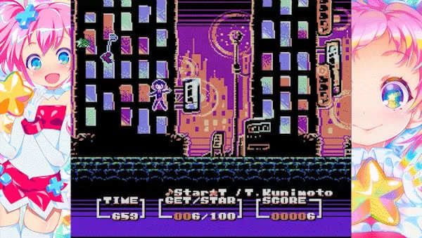 The RIKI 8Bit Game Collection will feature an engaging mix of games and interactive chiptune albums. Among the games included is "Kira Kira Star Night!", a vibrant jumping action game that will captivate players with its colorful graphics and dynamic gameplay. Additionally, the collection features "Astro Ninja Man DX," a robust shoot 'em up that promises intense action and strategic gameplay.