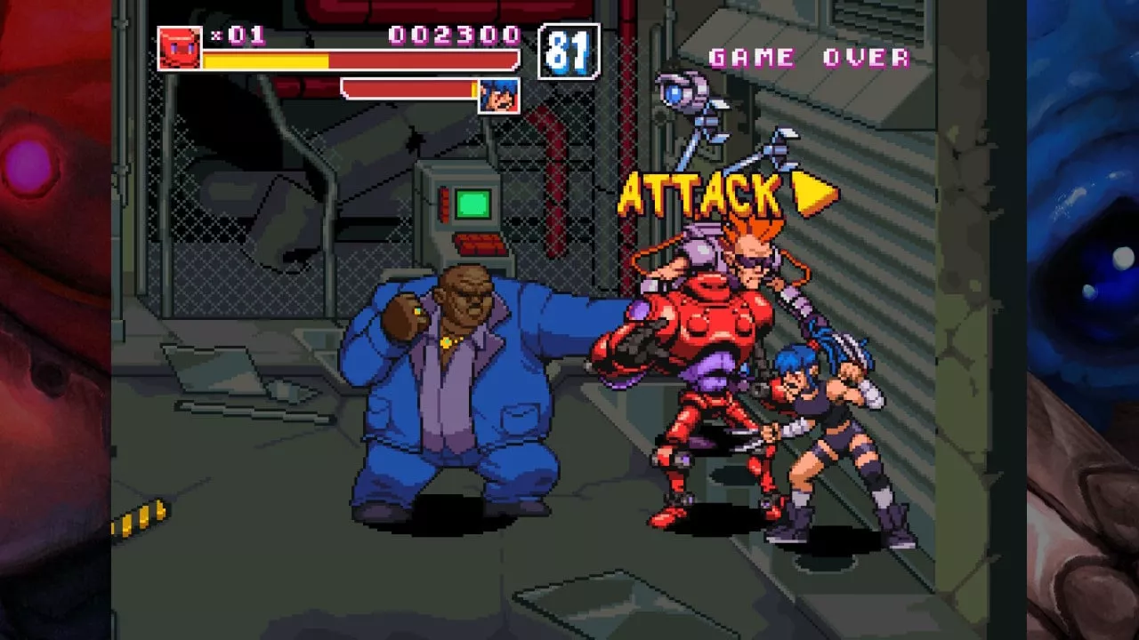 One perplexing exclusion is the lack of traditional grabs for most characters, a staple feature in many classic beat 'em ups that helps manage larger groups of enemies. Nevertheless, Golem's signature grabbing move partially mitigates this absence.